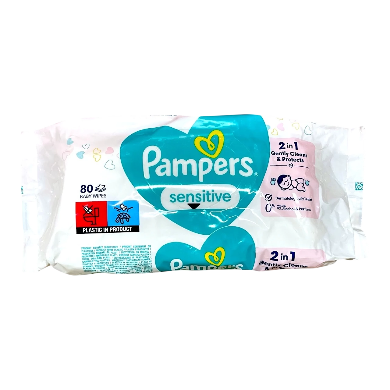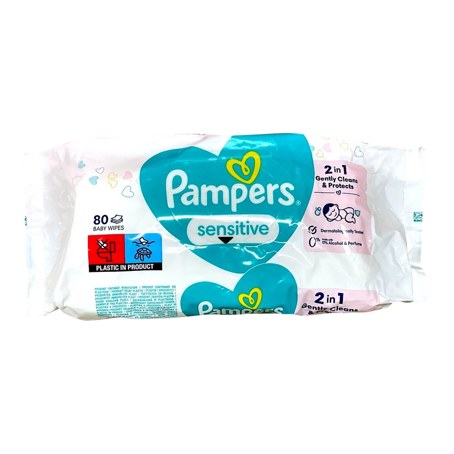 A Pampers Sensitive baba törlőkendő gyengéd tisztítást biztosít a mindennapi bőrápolás során. Parfümmentes, hipoallergén összetétele óvja a bőr természetes pH-értékét, miközben segít megelőzni az irritációt és a kipirosodást. Soft Grip™ textúrája különösen puha, így alaposan tisztít anélkül, hogy dörzsölné vagy megterhelné a bőrt. Alkohol-, színezék- és illatanyagmentes, bőrgyógyászatilag tesztelt formula, amely kíméletesebb még a pamutnál és a víznél is.